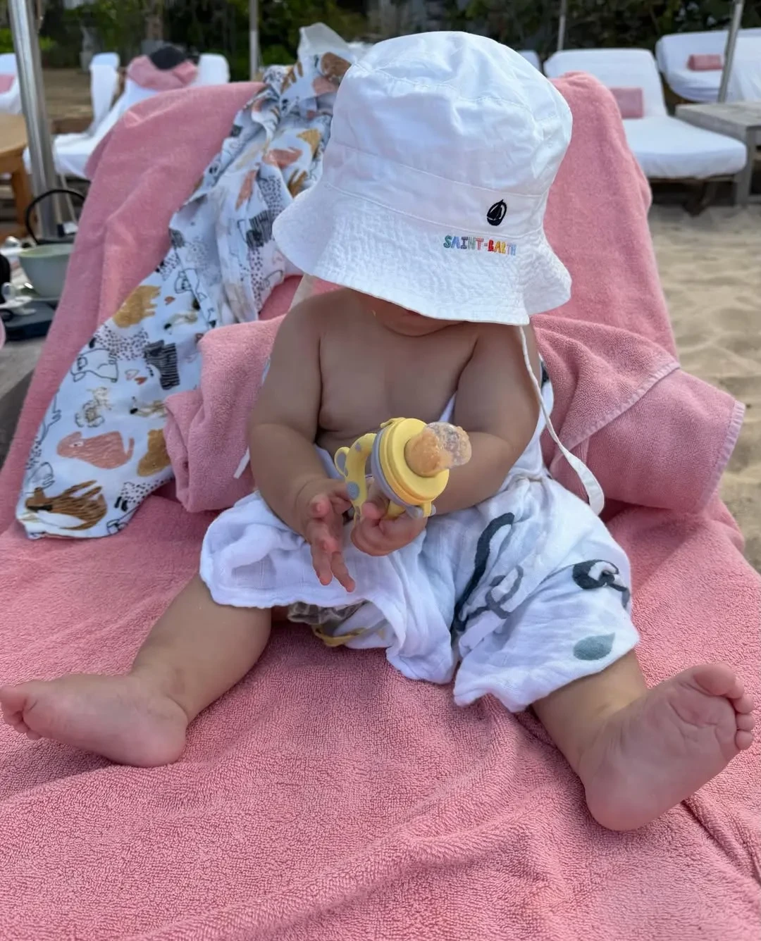 На фото Оболенцева позирует в купальнике Chanel и прозрачной юбке на острове Сен-Барт, где пара год назад сыграла свадьбу. "Любовь — это пятое время года. А.А.А.", — подписала фото Надежда.