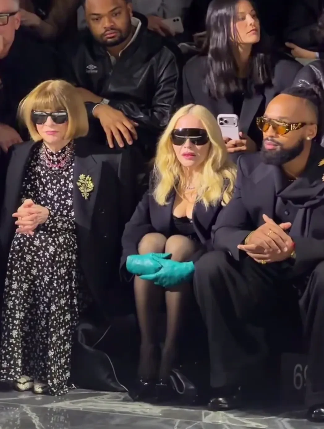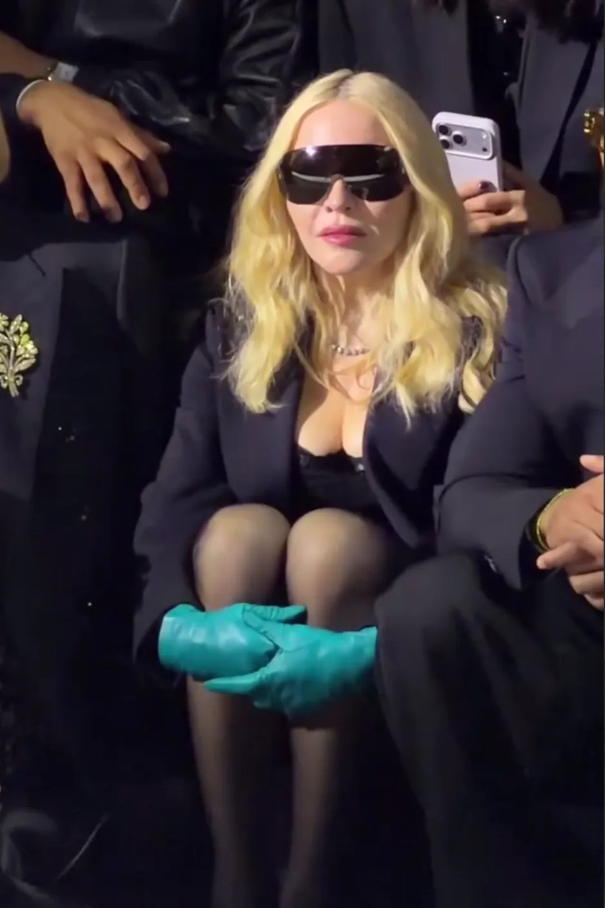 67-летняя поп-звезда пришла на показ в корсете и микроюбке, дополнив образ кожаными перчатками и солнцезащитными очками. Мадонна сидела в первом ряду рядом с Анной Винтур, а после показа поздоровалась с основателями модного дома Dolce & Gabbana Доменико Дольче и Стефано Габбаной.