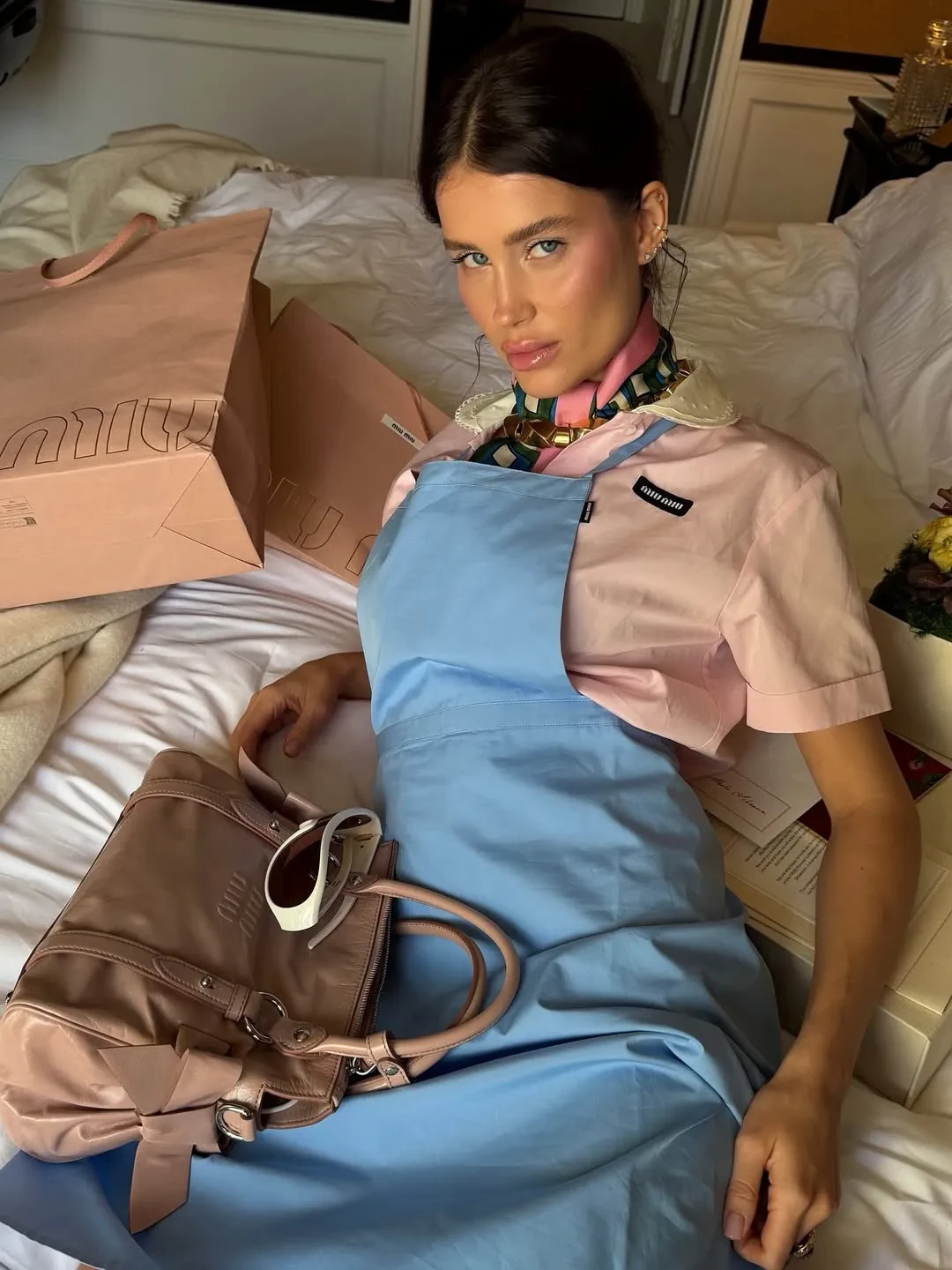 44-летняя Ксения Собчак показала свои образы для показа Schiaparelli, а также примерила костюм Thom Browne, а Ольга Карпуть снялась в прозрачном платье в отеле. Гражданская жена главы Газпромбанка Даша Попова выгуляла шубы, а Елена Перминова блистала на показе Miu Miu в "советском" платье. Похожие вещи из весенней коллекции бренда, посвящённой женщинам-рабочим и домохозяйкам, примерили Оксана Бондаренко, Алиса Вольская, Мария Лобанова и Ксения Шипилова.