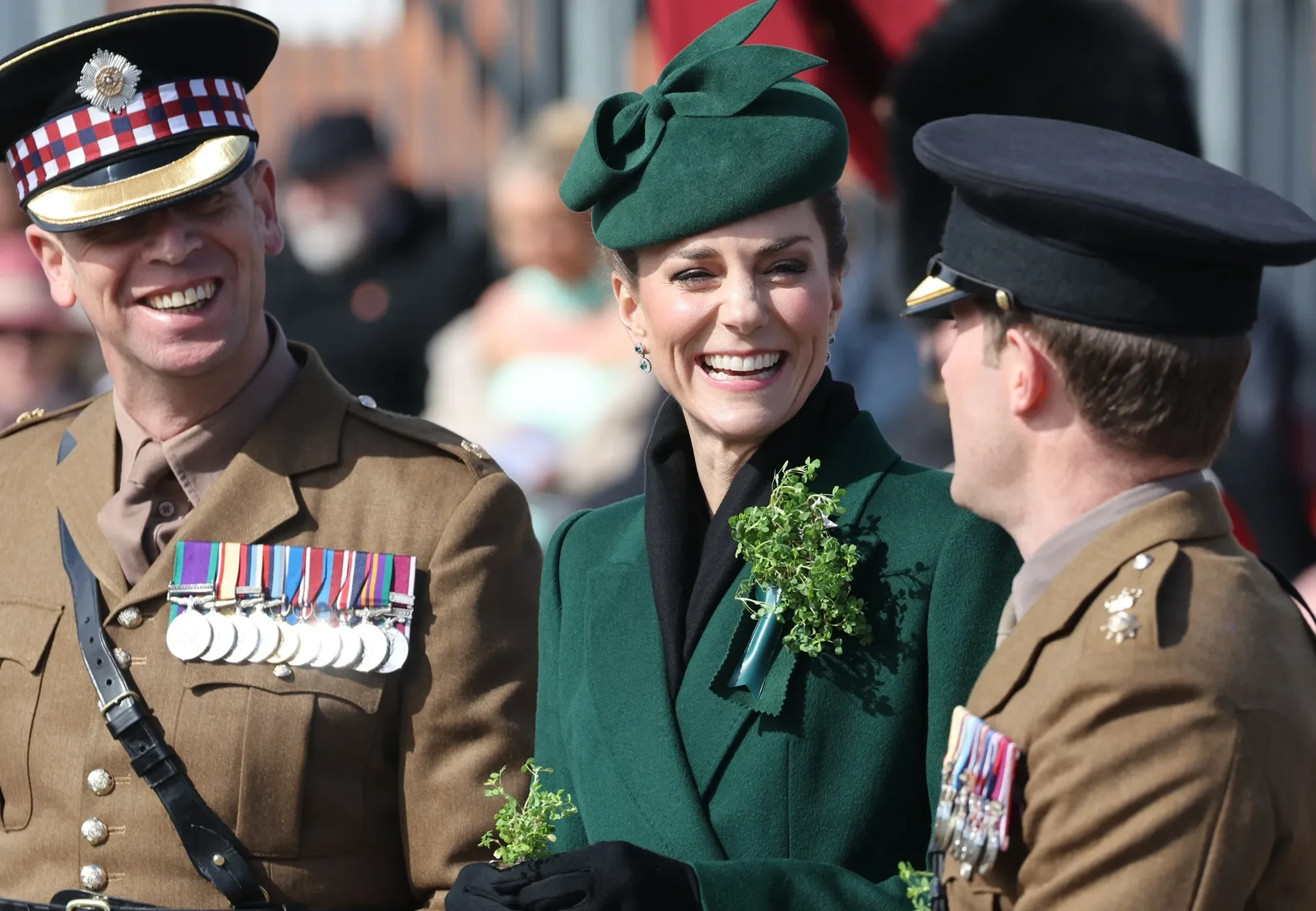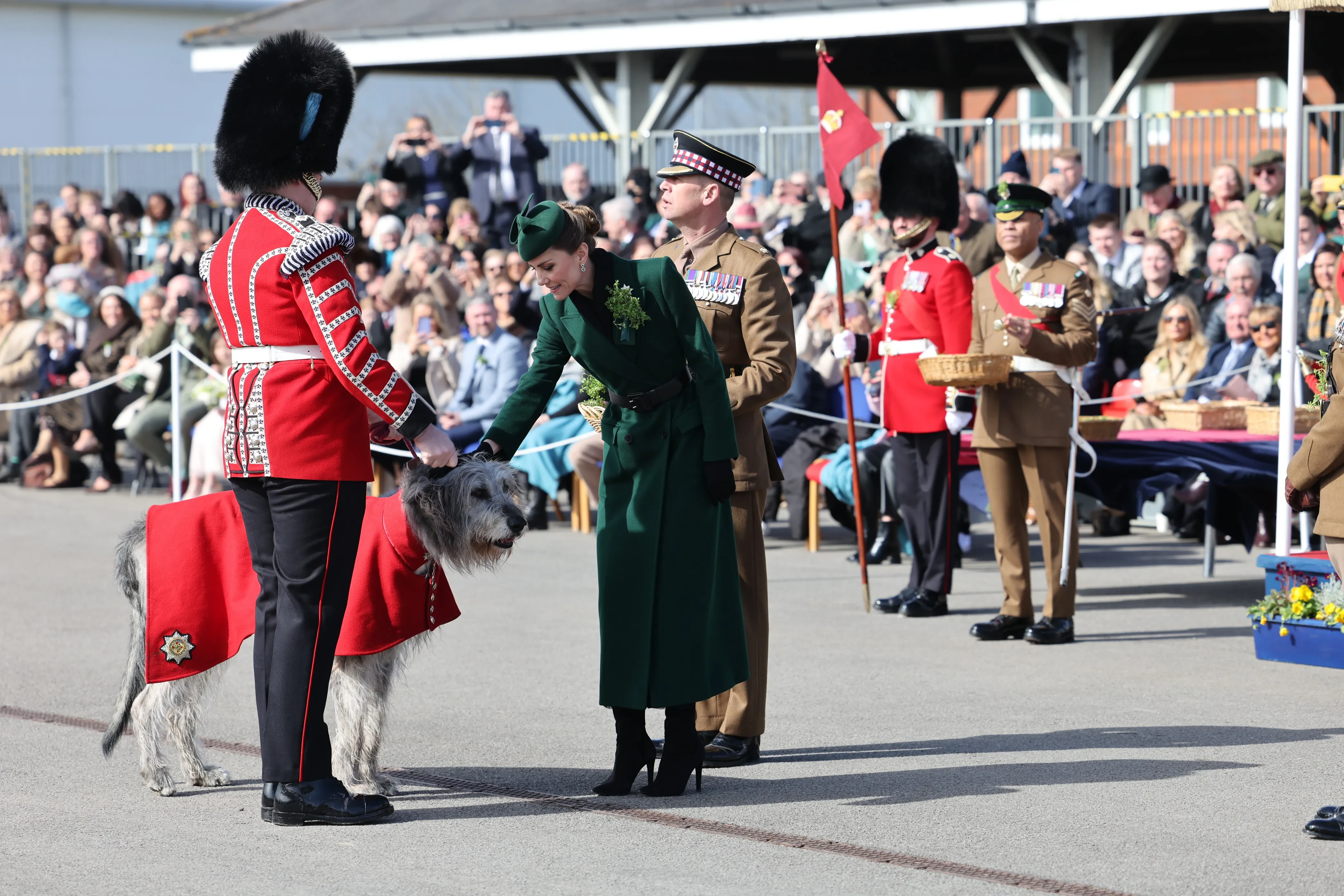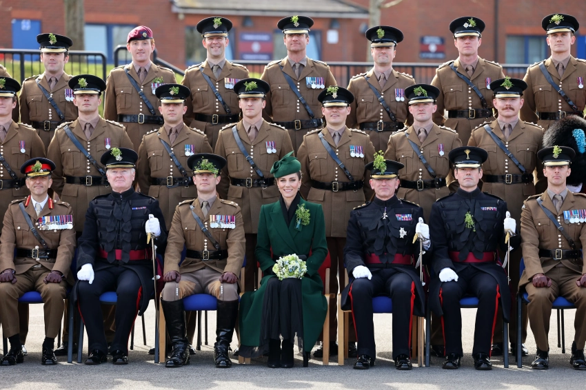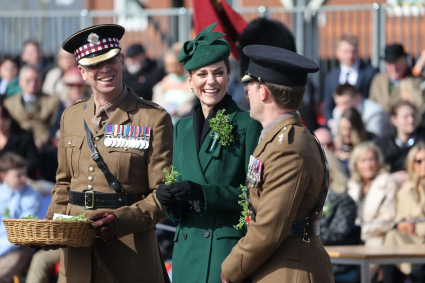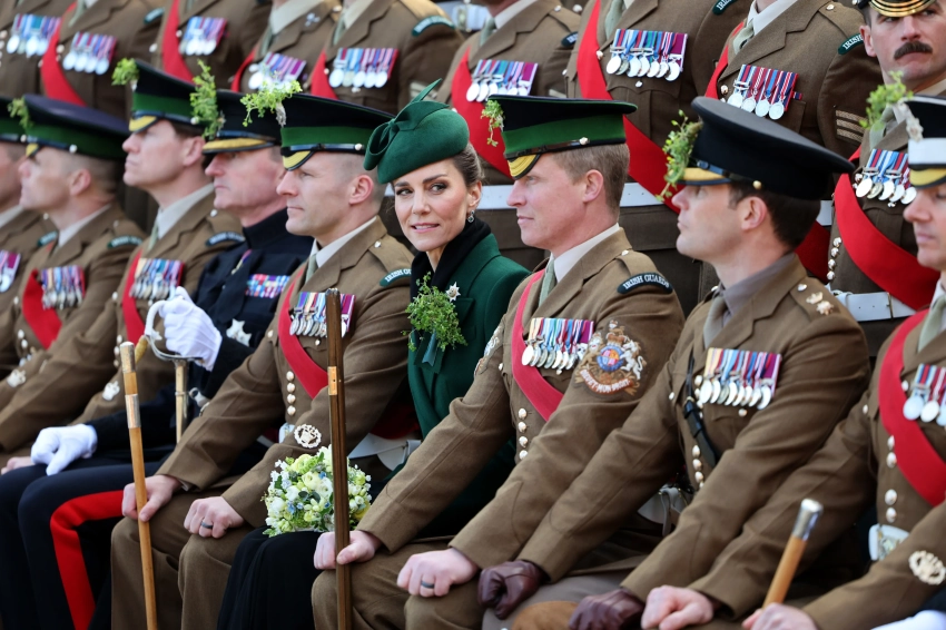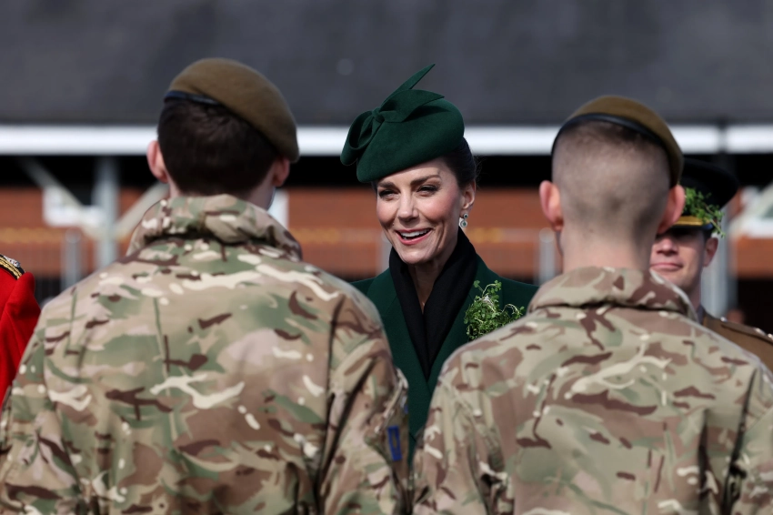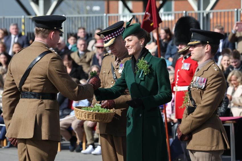 Принцесса Уэльская Кейт Миддлтон посетила традиционный парад Ирландской гвардии в честь Дня святого Патрика в Олдершоте (Хэмпшир). Это стало её вторым официальным участием в мероприятии после возвращения к обязанностям после болезни.