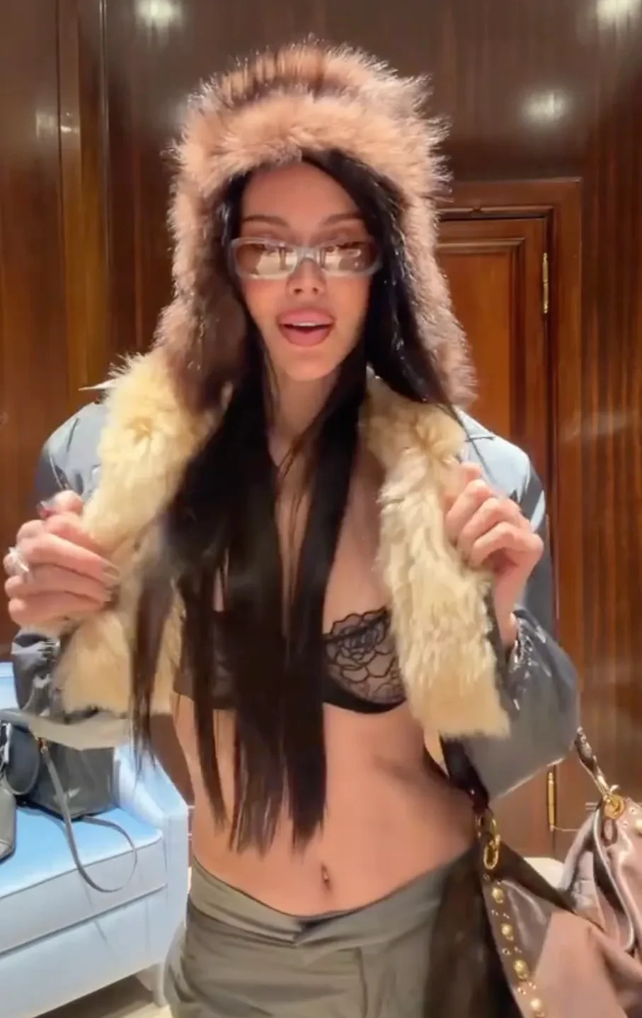 Самойлова посетила несколько модных показов и вечеринок, куда она ходила в образах Balenciaga, Schiaparelli, Saint Laurent и других брендов. На новых снимках мать четверых детей позирует в легинсах с косухой, кожаных микрошортах и корсете, кружевном боди, шубе с колготками, блестящем облегающем платье, нижнем белье и не только.