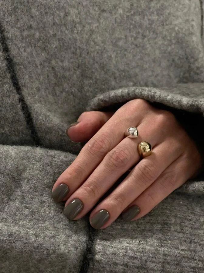 Глубокий и ровный цвет, напоминающий полированный камень. Отличная альтернатива черному: строгий, но мягкий, особенно в сочетании с серебром.