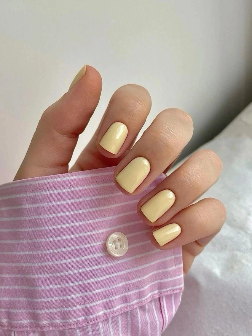 Мягкий, сливочный желтый освежает руки и делает кожу светлее. Банановый тон подходит для коротких ногтей и создает мягкую жизнерадостность без излишней яркости.