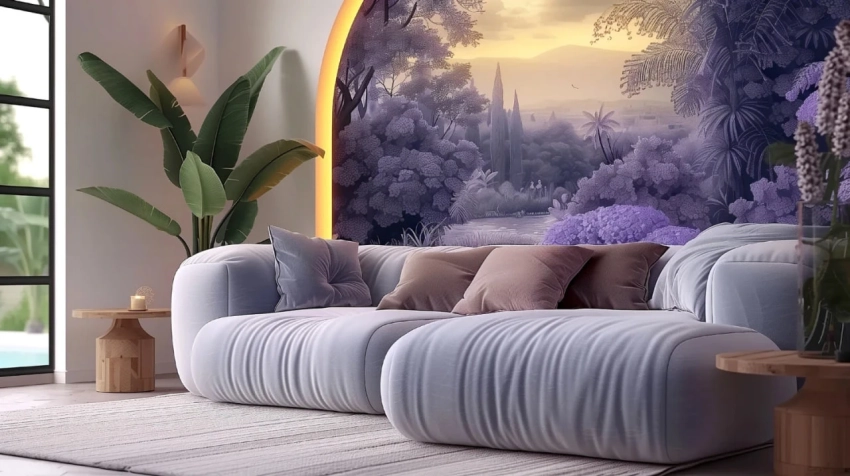 Любовь к природе в интерьере никуда не исчезает. В 2026 году популярны обои с эффектом: