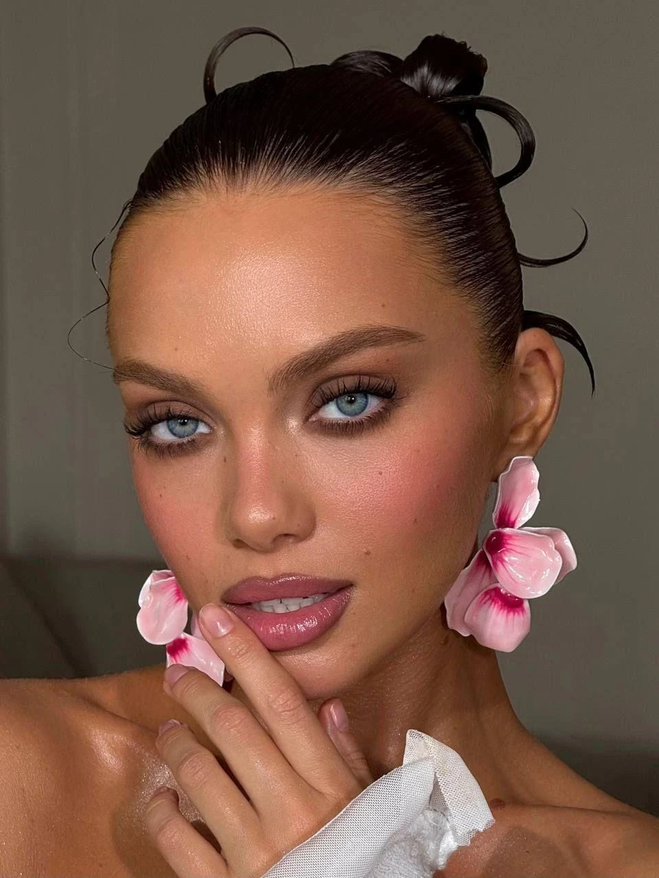 - Студия: свет «съедает» контраст — можно чуть усилить румянец, скульптор и глаза, но аккуратно с хайлайтером.