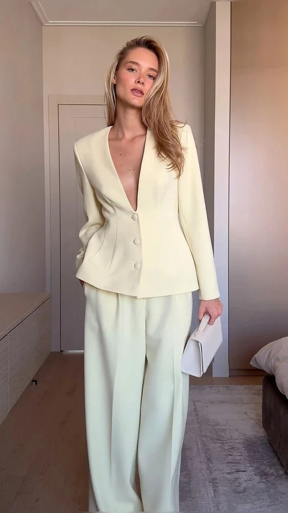 - Белый и молочный костюм привлекает внимание и требует аккуратности, но в сочетании с правильной обувью и аксессуарами он может стать частью повседневного гардероба или праздничного образа.