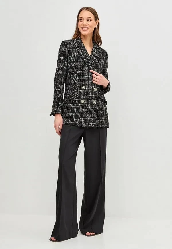 Винтажные элементы легко адаптируются под разные комбинации: жакет в «гусиную лапку» отлично смотрится с брюками, джинсами или даже поверх повседневного платья. Такие вещи создают «умный гардероб», который не устаревает.